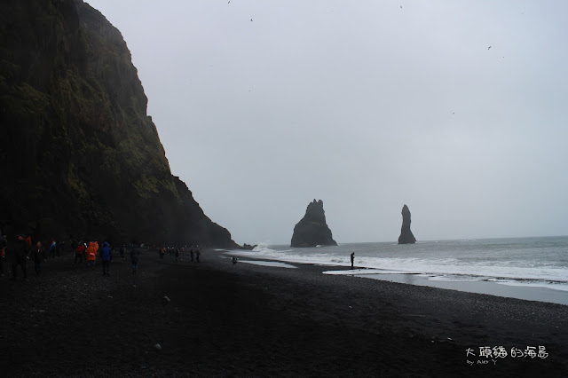 遠遠的在海上有兩根石柱, 冰島的古老傳說是兩個Troll在晚上去偷了船想拉上岸, 可是天亮了被陽光照到就變石頭了, 但我因為也不知道真正的Troll長什麼樣, 所以看不出這兩塊石頭像什麼