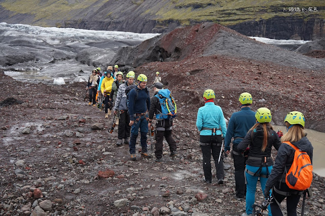 來冰島的一個重要行程當然就是冰原健行了! 😁 我這次參加的南方之旅一個行程就是去Svinafellsjokull冰原健行. 我當時在冰島南部時天氣一直不好, 大部分的時間都在下雨, 不過本來冰島南部就少陽光, 導遊還說有一年破紀錄太陽出現了"四個小時!" 日曬時間不多, 所以冰島人從出生就吃魚肝油來補充維他命D. 這種魚肝油在旅館的早餐都會提供, 就一瓶看起來像沙拉油的黃色液體, 有興趣的人可以在超市買到.