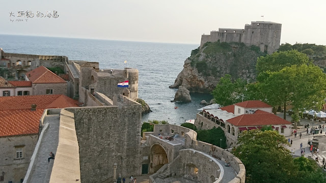 走了一圈以後決定去爬城牆(City Walls). 爬一次要150KN (約台幣750) 貴到嚇人. 但既然來了就去爬吧! 我個人覺得還蠻值得的, 走一圈全長兩公里可以看到整個杜布洛夫尼克舊城區跟城外的亞德利亞海~(不過在熱天的時候要黃昏時再走, 因為全程沒有遮蔽, 大熱天可是會把人曬乾的)