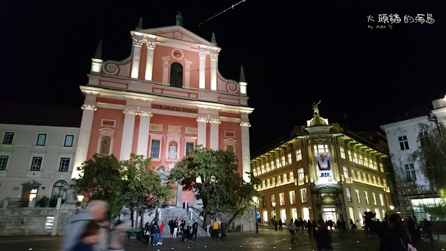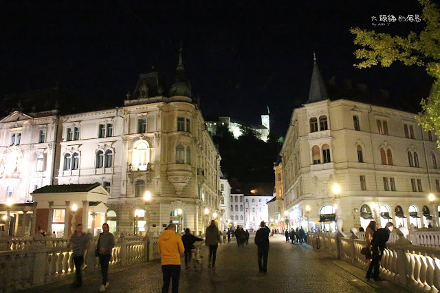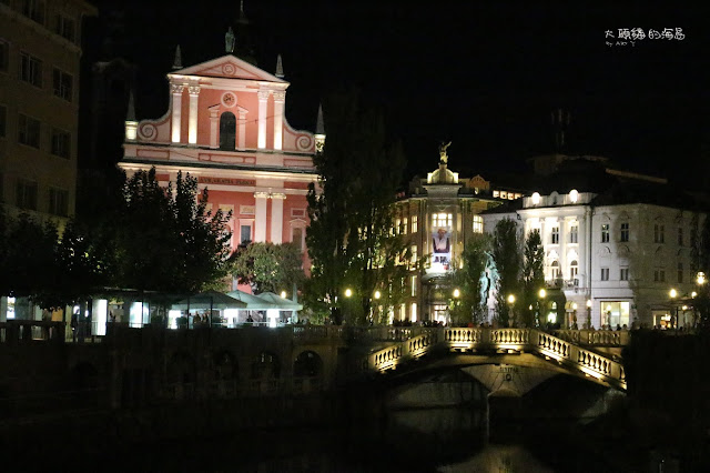 夜晚的盧布里亞納也挺美, 河邊餐廳聚集非常熱鬧.