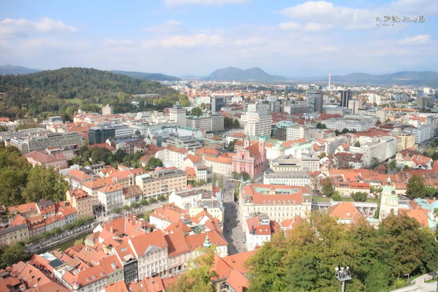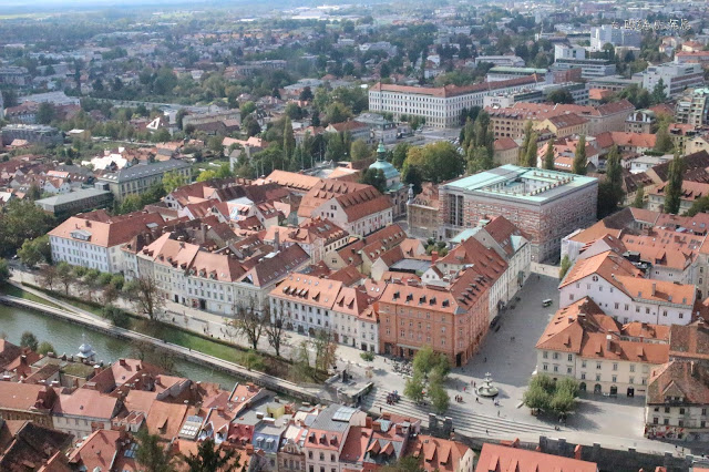 爬到城堡中的高塔上可以眺望整個盧布里亞納, 跟克羅埃西亞很相像的是很多在斯洛維尼亞的建築物也有磚紅色的屋頂