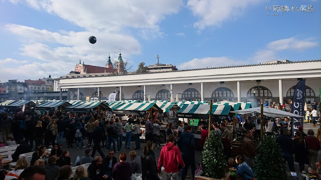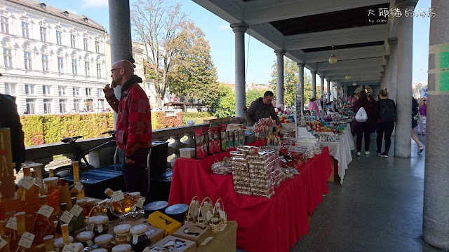 中央市場區(Central Market Area)有露天市集跟小吃, 到晚上就變得跟台灣的夜市很像, 旁邊的河岸拱廊也是普雷契尼克的作品