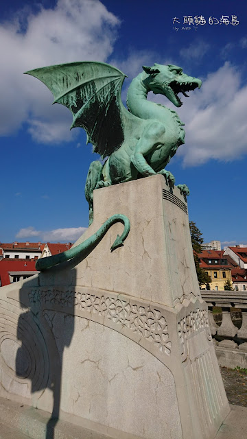 斯洛維尼亞的首都盧布里亞納(Ljublijana, 斯洛維尼亞文字用很多"J", 看起來很難念, 但其實把"J"念成"依"就差不多了)是個超迷你也很迷人的城市. 一條盧布里亞納河(Ljublijanica)穿過, 其中一座橋上在兩頭四端有綠色的龍, 就叫做龍橋 (Dragon Bridge)