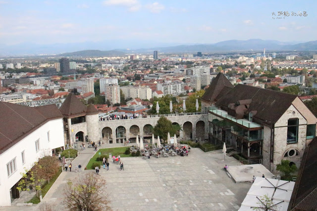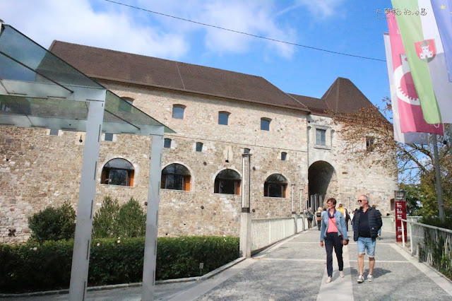 盧布里亞納城堡位於山丘上, 可以走上去也可以搭纜車上去, 還有人說可以騎單車, 可是齁~ 山路實在蠻陡的, 我覺得騎單車應該會摔下去吧... 其實人類在此地的歷史很悠久, 史前時代就有人居住在此, 後來經歷凱爾特人及羅馬人在此建了堡壘 ,堡壘之後曾作為軍事用途, 後來也經歷過成為貴族居所, 跟最後的監獄跟軍營, 現在則是改成博物館, 餐廳, 也有很多藝文活動在此舉行