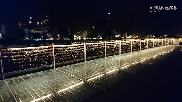 夜晚的屠夫橋跟橋邊鎖滿的愛情鎖