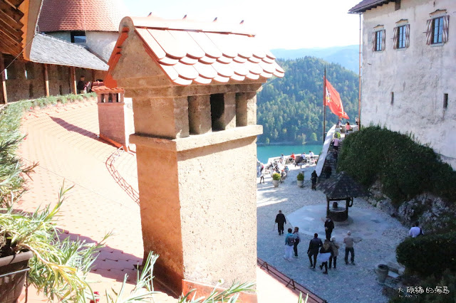 布列德湖邊可以看到兩個大的建築物, 一個在丘陵上面的是布列德城堡(Castle Bled)