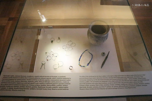 其實斯洛維尼亞的歷史很悠久, 只是感覺大部分的人感到很陌生. 博物館裡展出羅馬時代的工具, 飾品跟容器. 很早之前(六世紀時?)在布列德就有羅馬人跟斯拉夫人定居, 考古學家可以從找到的遺跡建築方式來判斷當時是什麼人住在裡面