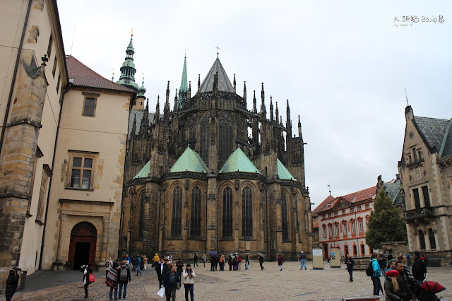 聖維塔大教堂旁邊有著奶油色外牆的是舊王宮(Starý královský palác), 現在是政府辦公處.