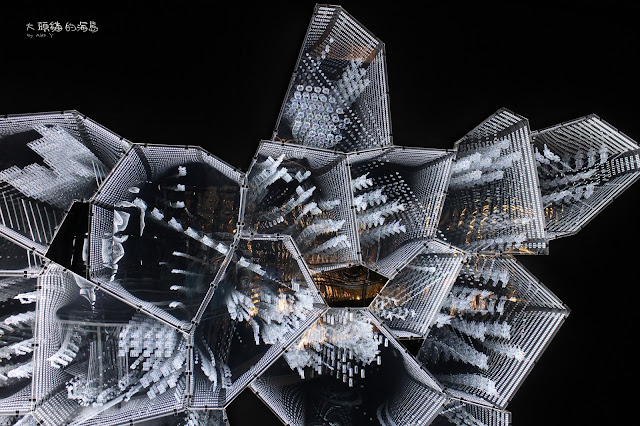 外面的園區則有用無數小顆水晶玻璃來做成一整片的水晶雲, 並且在"鏡湖"的上方閃耀, 效果太神奇了!