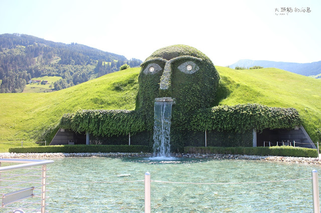 進入園區會先看到吐口水的綠巨人, 綠巨人的內部就是博物館, 展出各種水晶藝術品.