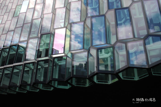 Harpa有一面的牆很特殊, 是強化玻璃組成的蜂窩型