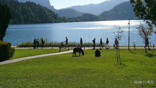 很幸運的到了布列德時的天氣很好, 陽光充足, 所以拍出來的照片藍天綠湖, 隔天早上再來拍時起霧了呢...但是看似很溫暖, 氣溫其實也只有攝氏12度左右, 所以九月底的斯洛維尼亞已經有點冷了.