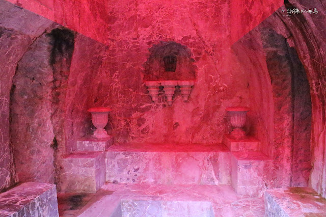 有個打著紅光的小空間就在城堡第一層, 從外面就可看到, 雖然就面對著有隻天鵝那個水池, 但我覺得很多人都沒發現. 看起來像個澡堂, 但我也不知道是做什麼的 (有人知道嗎?) 書上都沒提到過...