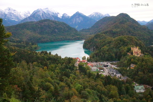 從新天鵝堡上的陽台遠眺阿爾卑斯湖(Alpsee)跟舊天鵝堡